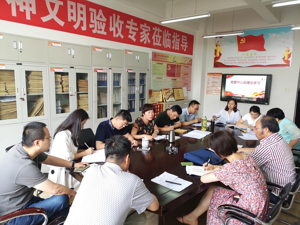 2019年6月25日上午10:00,英国正版365党委召开党委中心组理论学习会议,学院党委书记夏瑞丽主持,学院领导班子成员、学科部主任及科级以上干部参会学习。