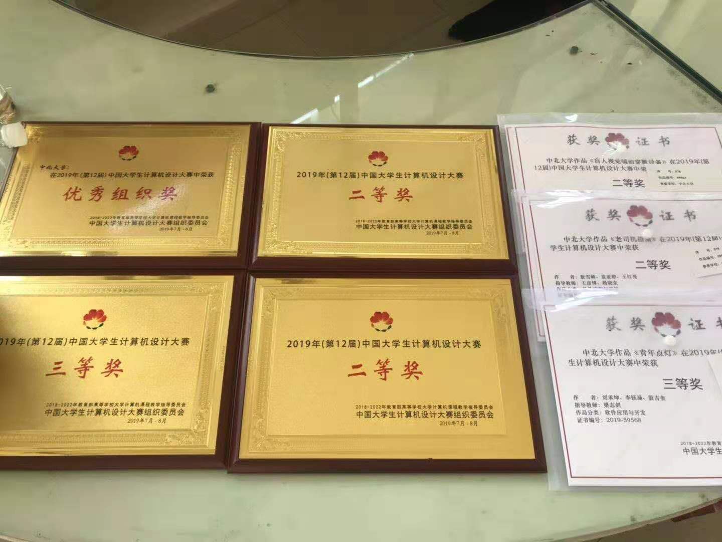 8月27日,2019年中国大学生计算机设计大赛落下帷幕,本届大赛由教育部大学计算机课程教学指导委员会中国大学生计算机设计大赛组织委员会主办,全国总决赛根据不同组别共设有六大赛区,分别分布于北京、吉林、安徽、杭州的六所高校,我校共有31件作品晋级国赛。从7月17日开始,中北师生辗转于六大赛区,参加了六大组别的比赛,最终获得一等奖3项、二等奖7项,三等奖14项,(名单请见于附表)并且,中北大学首次获得国赛优秀组织奖一项。