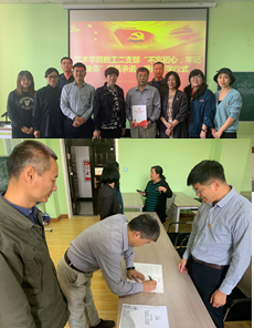 仅仅半天时间,教工二支部掀起了开展主题教育活动的热潮并举行了“不忘初心、牢记使命”党员承诺、践诺签字仪式。大家纷纷表示,要从自身做起,牢记宗旨“守初心”,主动作为“担使命”,对标对表“找差距”,埋头苦干“抓落实”,把解决问题作为检验主题教育活动成效的试金石,确保主题教育活动取得实效。以实际行动践诺“不忘初心、牢记使命”,努力做好教师本职工作,为迎接新中国成立70周年献礼。