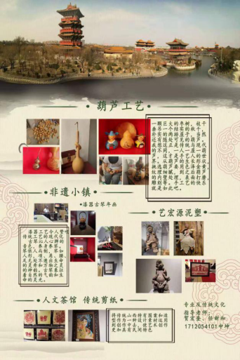 除实地考察之外,同学们以考察的主要内容为基本线索,进行更为深入的了解和全面的学习,认真写出实践总结报告,同时完成了非物质文化遗产海报作品设计,并于20日至26日在学校图书馆进行作业展览。