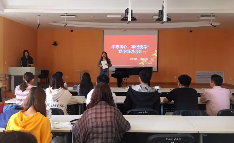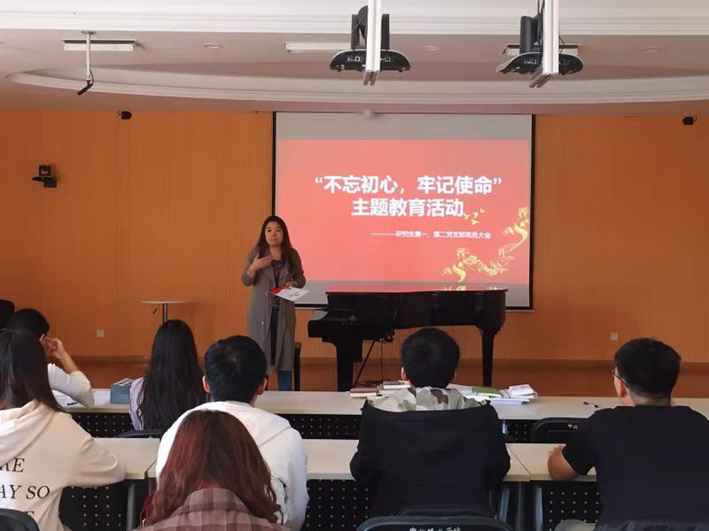 会上,赵婧老师首先带领大家认识了刚加入研究生党支部的研一同学。随后,范晓荣老师带领所有到场党员同志进行“不忘初心、牢记使命”党员宣誓,进一步加强了大家身为党员的决心。