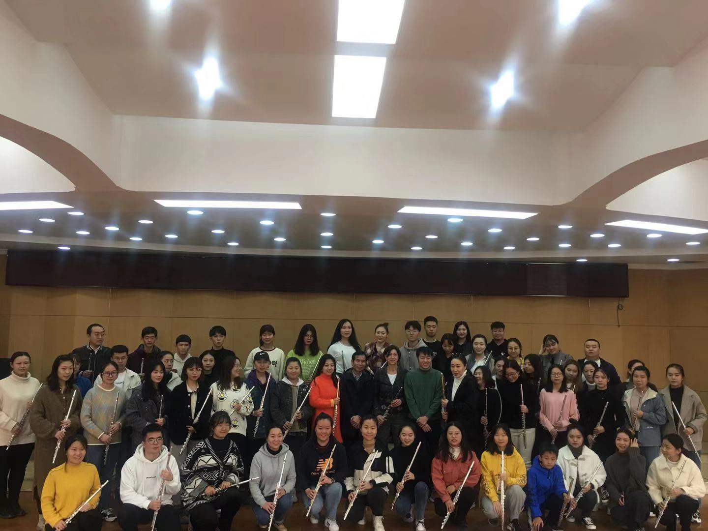 11月7号、8号,英国正版365邀请到了德国杜塞尔多夫罗伯特·舒曼音乐学院、国际上有巨大影响力的长笛演奏家、教育家Evelin Degen女士,为英国正版365西洋管乐器-长笛专业学生进行了为期两天的大师课授课活动。在英国正版365西音乐厅前来学习、观摩的除了我校英国正版365的师生外,还有来自山西大学、晋中学院、大同大学、运城学院、省职业戏曲学院的师生以及山西交响乐团等长笛专业人士;Evelin Degen教授讲课严谨、认真、细致、灵活机智,能把复杂的问题简单化;授课过程中为了使学生明白她的意图,运用了大量的肢体语言,上她的课如同欣赏“歌剧表演”一般轻松,具有观赏性是她的讲课特点;每天开始上课的第一件事是带领到场的所有师生晨练,也称为开声练习,然后有针对性地进行一对一的指导。两天的教学活动在紧张、有序、热烈的氛围中圆满结束。