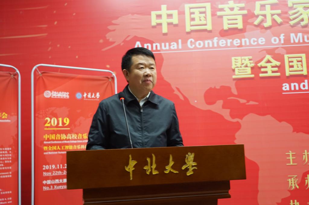 在庄严的国歌声中,2019中国音乐家协会高校音乐联盟年会拉开帷幕。首先,由中北大学沈兴全致开幕辞。沈校长在介绍了中北大学的基本情况后,对来自全国各地远道而来的联盟成员表示热烈欢迎,对中国音乐家协会高校音乐联盟工作人员表示感谢,同时表达了对中国音乐家协会高校音乐联盟越办越好的祝福。