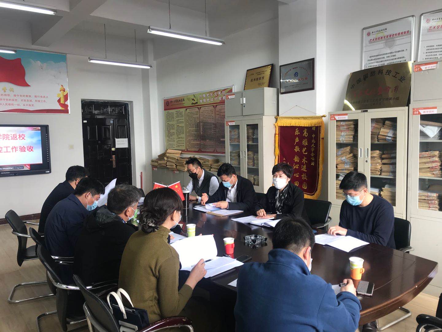 会上,夏瑞丽书记代表学院对照学校安排部署的自查内容十二方面进行了详细汇报,王燕平院长就疫情期间教学工作细节进行补充,为保证专业术科能做到停课不停学,学院主动开发APP开展一对一的网络教学。检查组听取学院的汇报情况后充分肯定了学院总体自查工作。曾校长重点阐明开学前进行防控防疫工作自查验收的必要性和重要性,并强调学院要严格按照学校要求对学生进校以后的防疫工作做好充分准备,要重点关注疫情期间学生的教学情况,尤其是毕业生、有特殊问题的毕业生,一定要保证一人一策;其次就是要根据学院特点灵活安排毕业生的返校事宜。