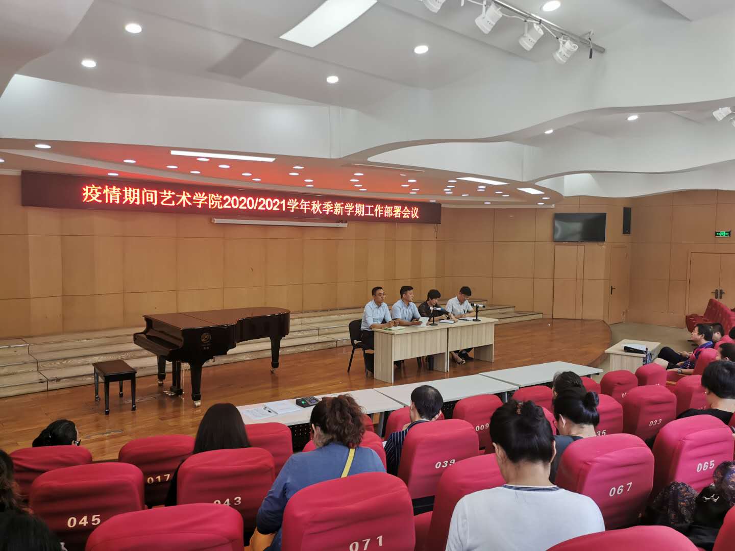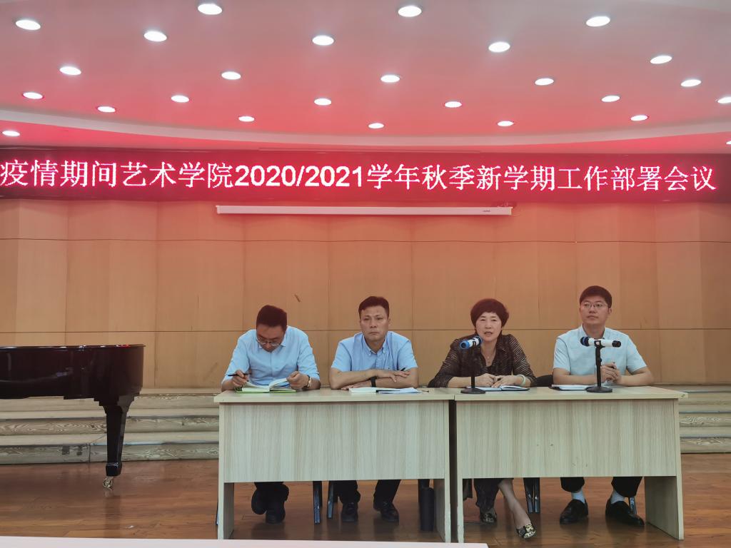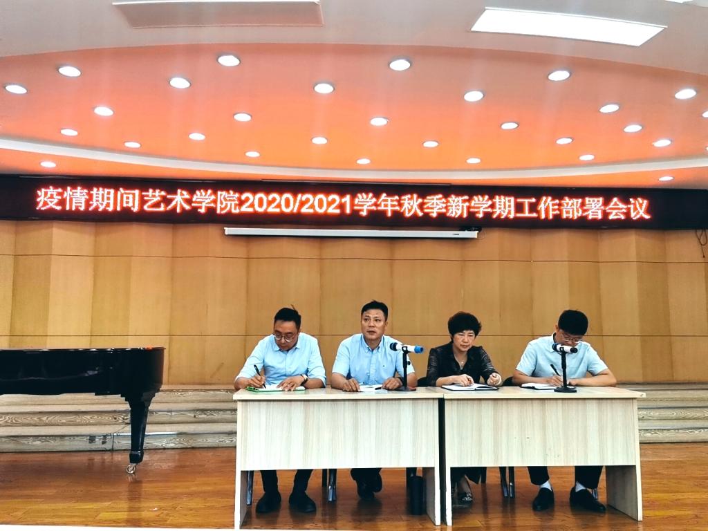 会上,院长王燕平首先对本学期的工作分别从学生返校管理、校庆筹备工作、新生入学教育、科研项目申报、比赛展演等几个方面进行了部署安排。重点强调了新学期要更好的把学院特色专业办好,在工作上要做到规范、有序的进行;并要求大家做好新学期疫情期间的安全防护工作,不得有丝毫的懈怠心理。