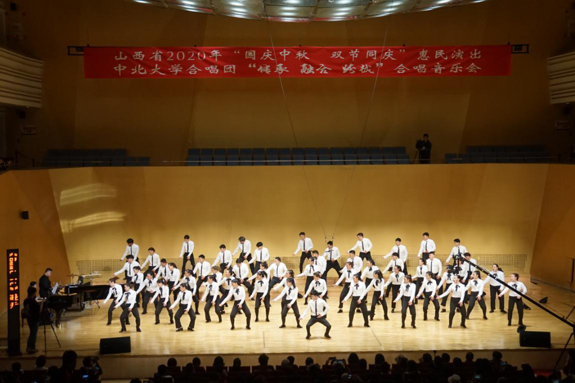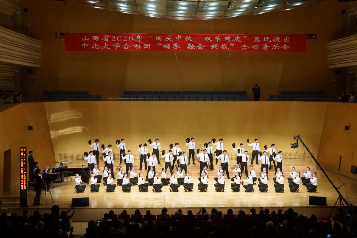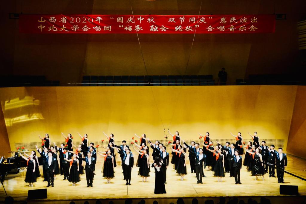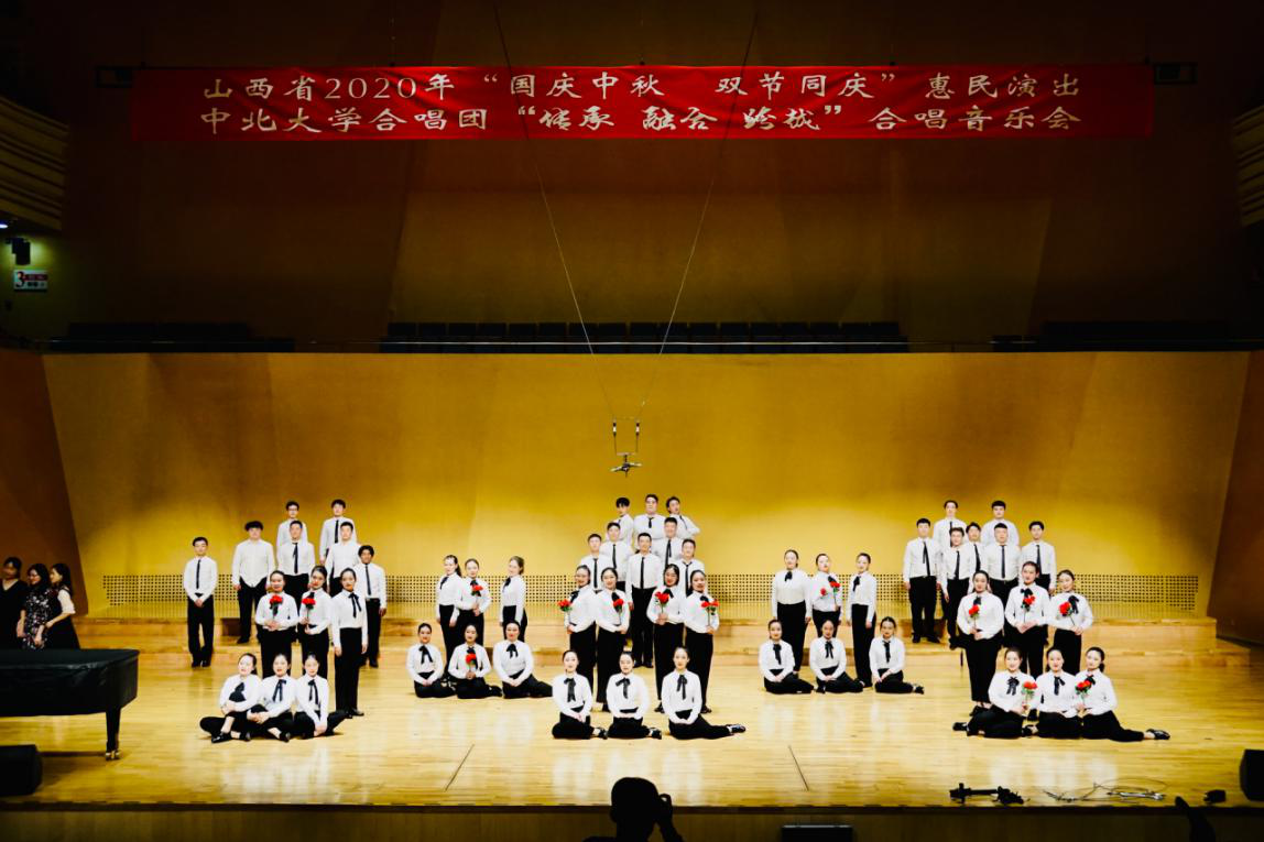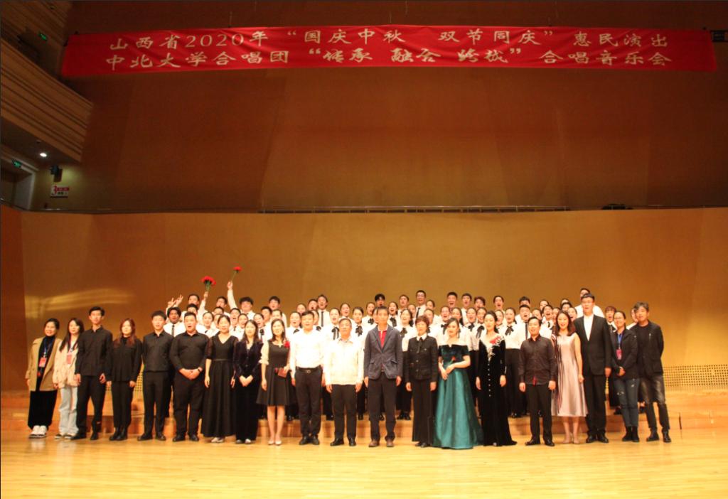 为热烈庆祝中华人民共和国成立71周年,中北大学建校80周年,弘扬主旋律、讴歌新时代, 2020年10月03日晚19:30中北大学合唱团在山西大剧院音乐厅成功举办“传承 融合跨越”合唱音乐会。本场音乐会由山西省文化和旅游厅,山西大剧院主办,同时受到了山西省音乐家协会及山西省合唱协会的大力支持。