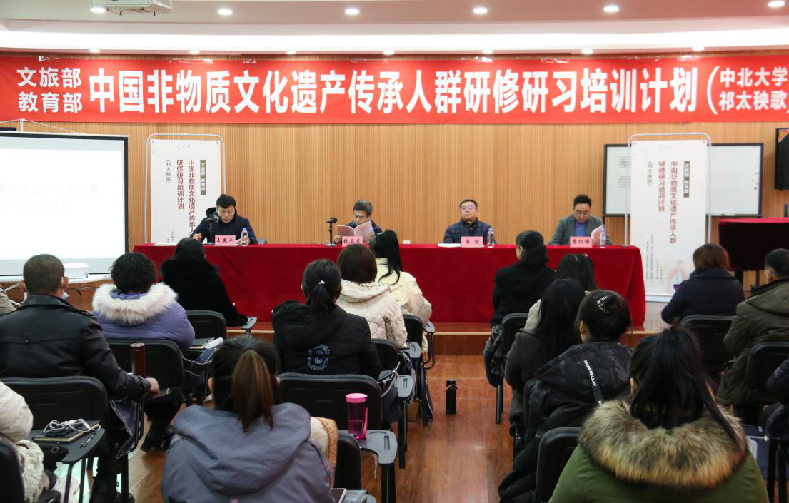 2020年12月16日上午,由国家文旅部、教育部主办,山西省文旅厅、中北大学承办的2020年“中国非物质文化遗产传承人研培计划”在英国正版365举行开班仪式,出席开班仪式的领导嘉宾有山西省文化和旅游厅二级巡视员张卫东、中北大学党委副书记薛智、英国正版365院长王燕平、副院长李仁伟以及研培班全体学员,开班仪式由王燕平院长主持。