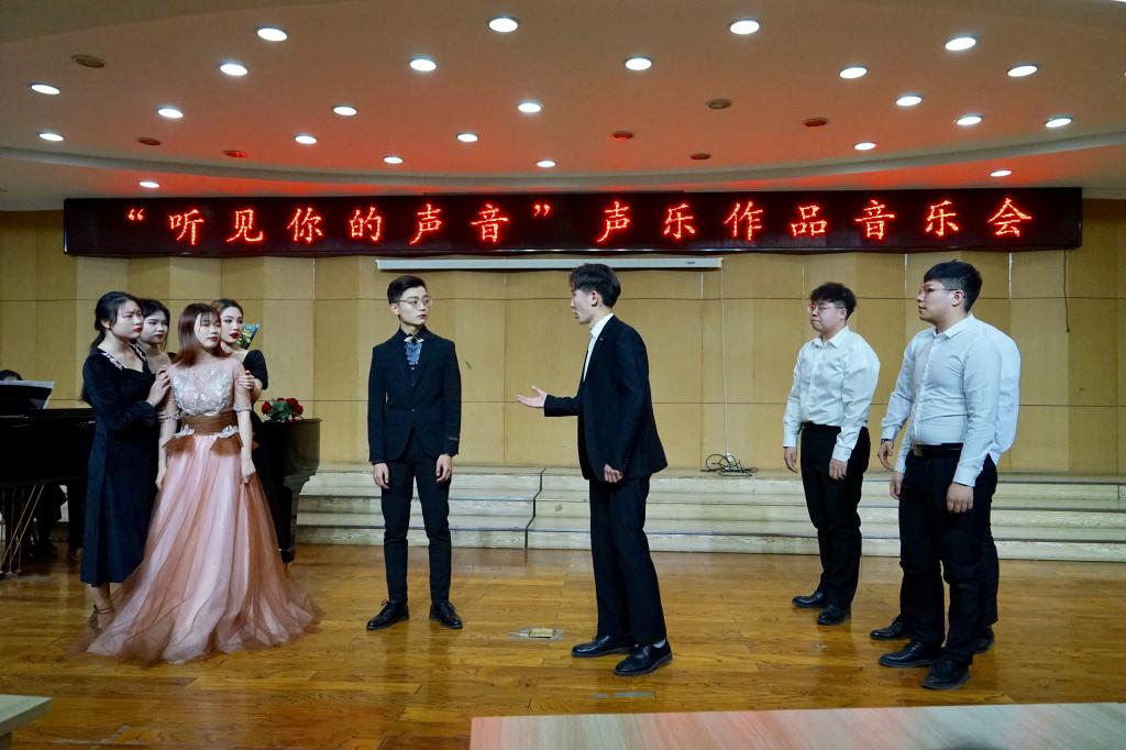 我听过一万首歌,看过一千部电影,读过一百本书,却只有你的声音打动我的心扉。音乐会共有10首不同风格的中外作品——《快给大忙人让路》一一选自罗西尼歌剧《塞维利亚的理发师》、《how beautiful are the feet ( 他们的脚踪何等佳美)》、《七仙女下凡》、《灿若星辰的目光》一一选自国家大剧院原创歌剧《运河谣》、《Per questa bella mano (玉手为誓)》一选自莫扎特歌剧 《魔笛》、《A vuchella (小嘴)》、《诗入的旅途》《Si le bonheur a sourire (若幸福让你微笑)》、《Rejoice Greatly, 0 Daughter Of Zion (欢呼吧!锡安使女)》--选自亨德尔清唱剧《弥赛亚》、莫扎特歌剧《唐璜》(Don Giovanni)选段欣赏、大合唱表演《山楂树》等。同学们运用了不同的表演形式以及不同的表现手法,赢得了现场观众的阵阵掌声。在音乐会结束时柯枫老师对本次音乐会进行了总结,并积极鼓励在场的每一位声乐专业学生,并对学生新的一年提出期盼与要求。