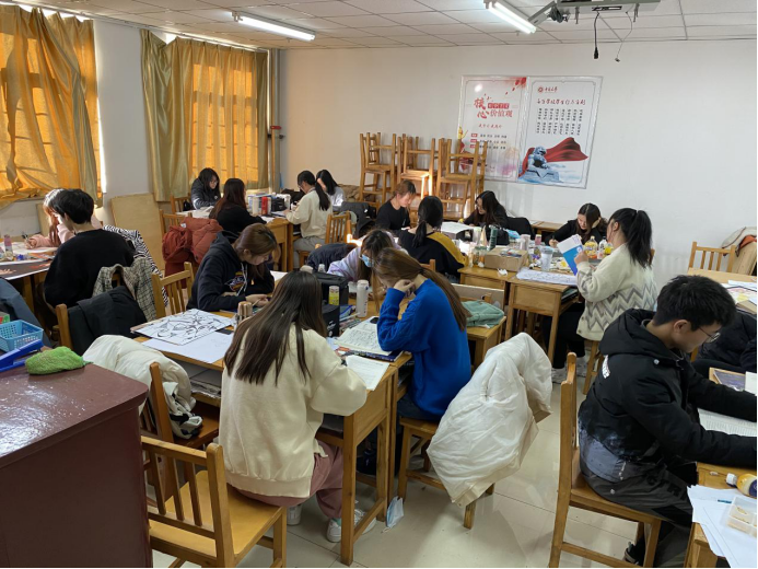 2021年01月10日下午,在九号楼五层进行了《造型基础1》课程结课作业展览。本次作业展共展出了百余幅学生设计作品。