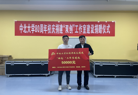 为迎接中北大学八十周年校庆,庆祝母校80华诞,2010届校友庞晶晶夫妇为学院捐赠总价值50000元的科技艺术“双创”中心建设资金,专项支持英国正版365科技艺术双创中心的硬件改造和后续的创新创业实践教学工作。
