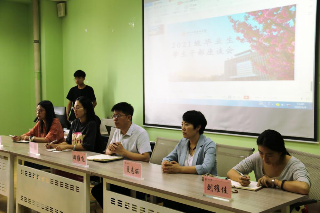 汾河两岸杨柳依依,二龙山旁扬帆起航。6月8日下午,英国正版365召开2021届毕业生学生干部代表座谈会,聆听毕业生学生干部代表的成长心声,为毕业生即将开启人生新征程加油鼓劲。院党委副书记田维飞,团委书记杜鹃,学生科科长夏志丽、副科长吕超,辅导员刘维佳及2021届团委学生会学生干部代表参加了座谈会。会议由院党委副书记田维飞主持。