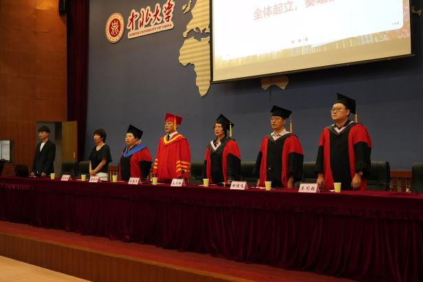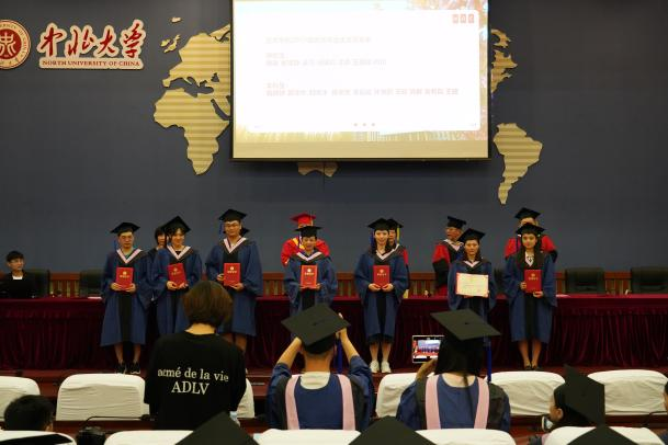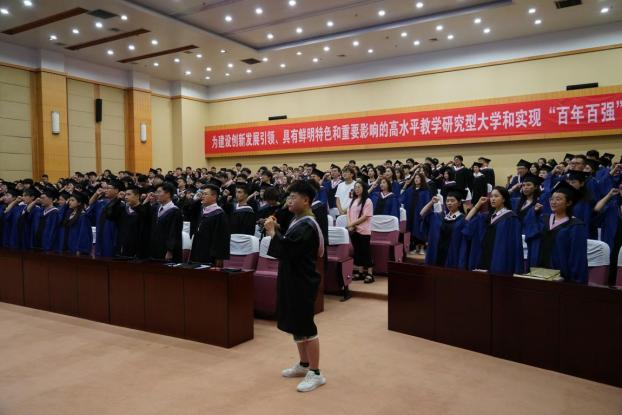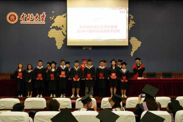 激昂雄壮的国歌声拉开了毕业典礼序幕。首先刘博洋同学带领2021届全体毕业生进行了庄严的宣誓,立志要铭记老师教诲,扬太行精神,展中北雄风,毕业后也牢记致知于行的校训,立志成为母校的骄傲。