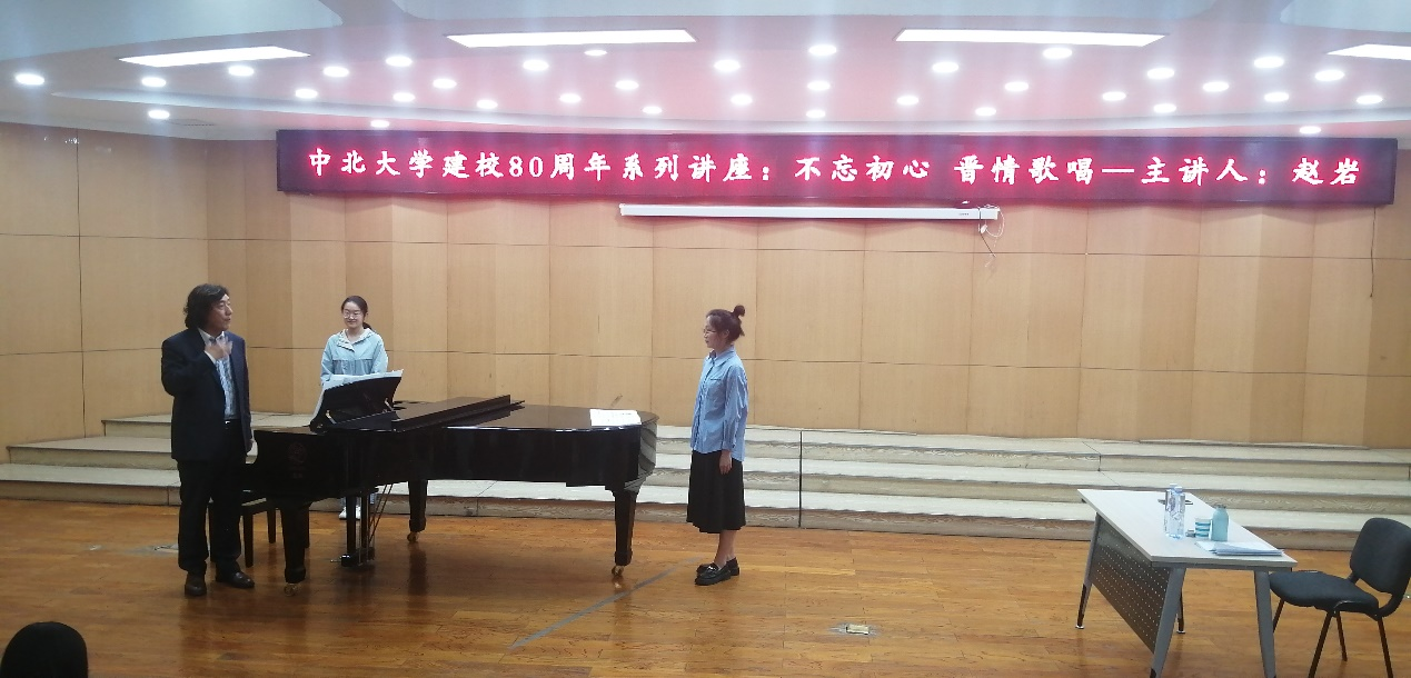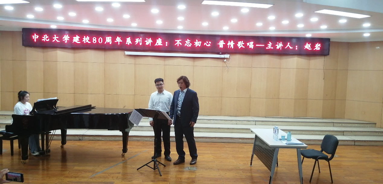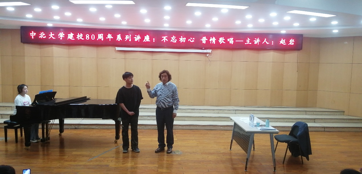 5月24日下午16:00,在英国正版365东音乐厅举办了庆祝中北大学建校八十周年系列学术讲座《不忘初心晋情歌唱》,由低男中音歌唱家赵岩先生主讲。