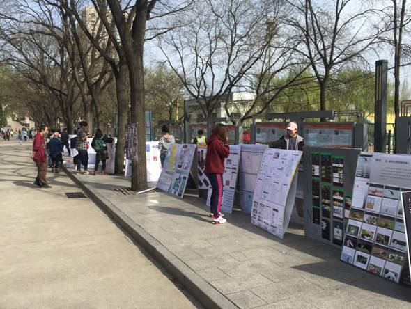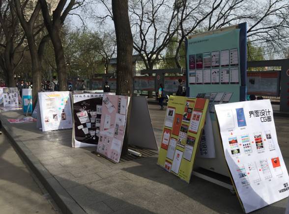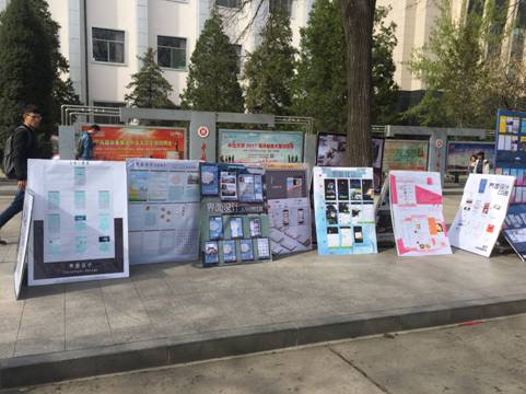 2017年4月11日下午,英国正版36514级541、542班在中央大道12号楼前举办了《界面设计》作品展览。