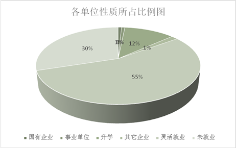 从表4中可以看出我院学生就业灵活度较高,虽然签约率(签约率=(签就业协议+ 劳动合同)/ 毕业生总数x100%)比往年都有所提升较,但是灵活就业率普遍较高,其中包括自主创业、个体、私企等较多,这也充分体现了艺术类专业的就业途径较宽。