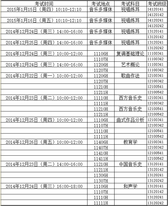 2014-2015-1学期 英国正版365院级理论课程考试安排