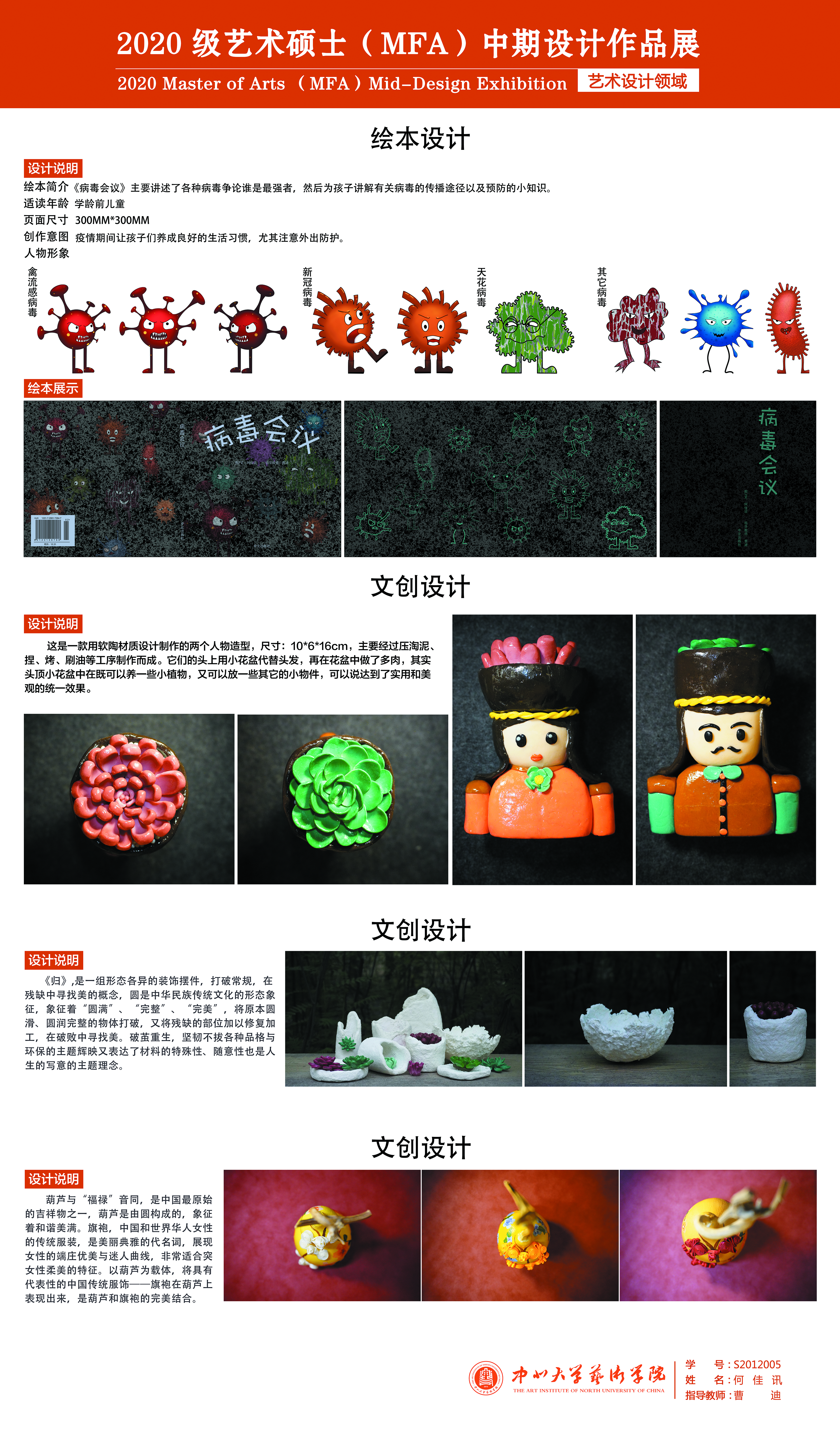 此次展览为2020级艺术设计领域研究生入学以来学习与实践环节的成果汇总,经过认真细致的策划及部署,学生们将丰富多样的设计作品呈现在展览中。研究生中期展览不仅是学生个人成果的总结,同时也是相互交流与学习的机会。展览期间各位专业导师对展出的作品进行了细致观看与点评,针对性地指点同学们所存在的问题,以及在今后设计中应注意的方面,同学们纷纷表示受益匪浅。本次展览是英国正版365研究生教育教学的重要体现,也是英国正版365研究生教育实践教学内容的具体体现,客观充分地反映了英国正版365研究生教育阶段取得的成果。