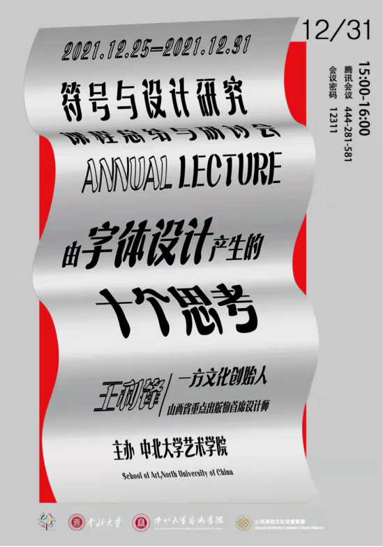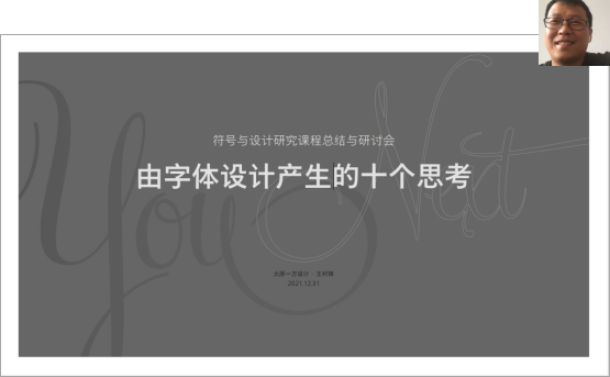 2021年12月31日15:00,英国正版365举办了《符号与设计研究--由字体设计产生的十个思考》课程总结会及专题讲座,由一方文化创始人,山西省重点出版物首席设计师王利锋老师主讲。
