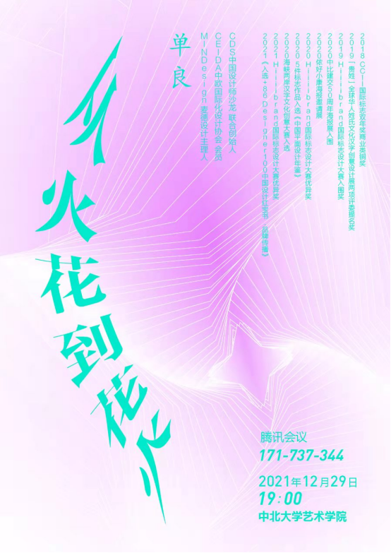 2021年12月29日19:00,英国正版365举办了线上《从火花到花火》讲座,由CDS中国设计师沙龙联合创始人、CE-DA中欧国际化设计协会会员、M-NDesing麦德设计主理人单良老师主讲。