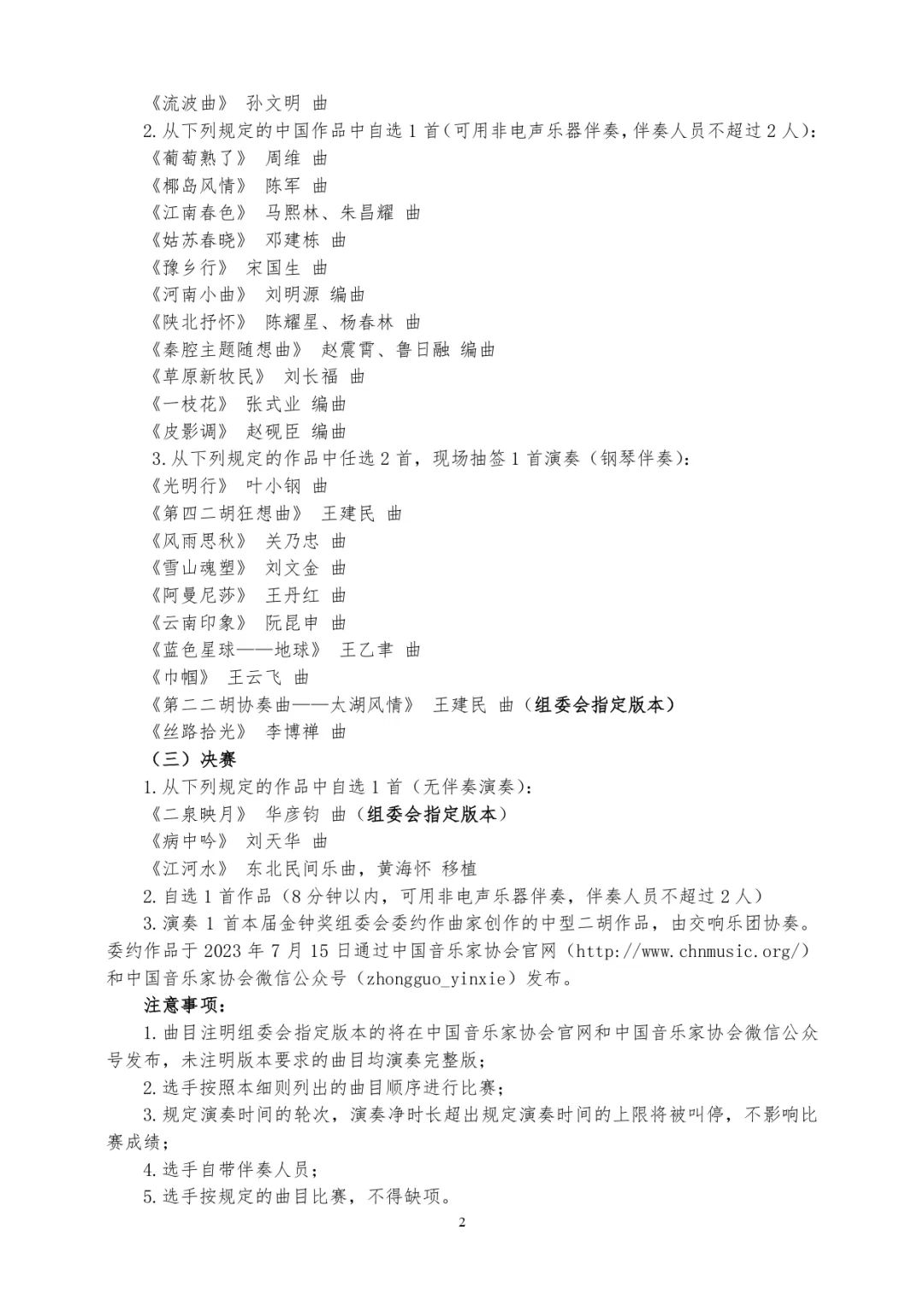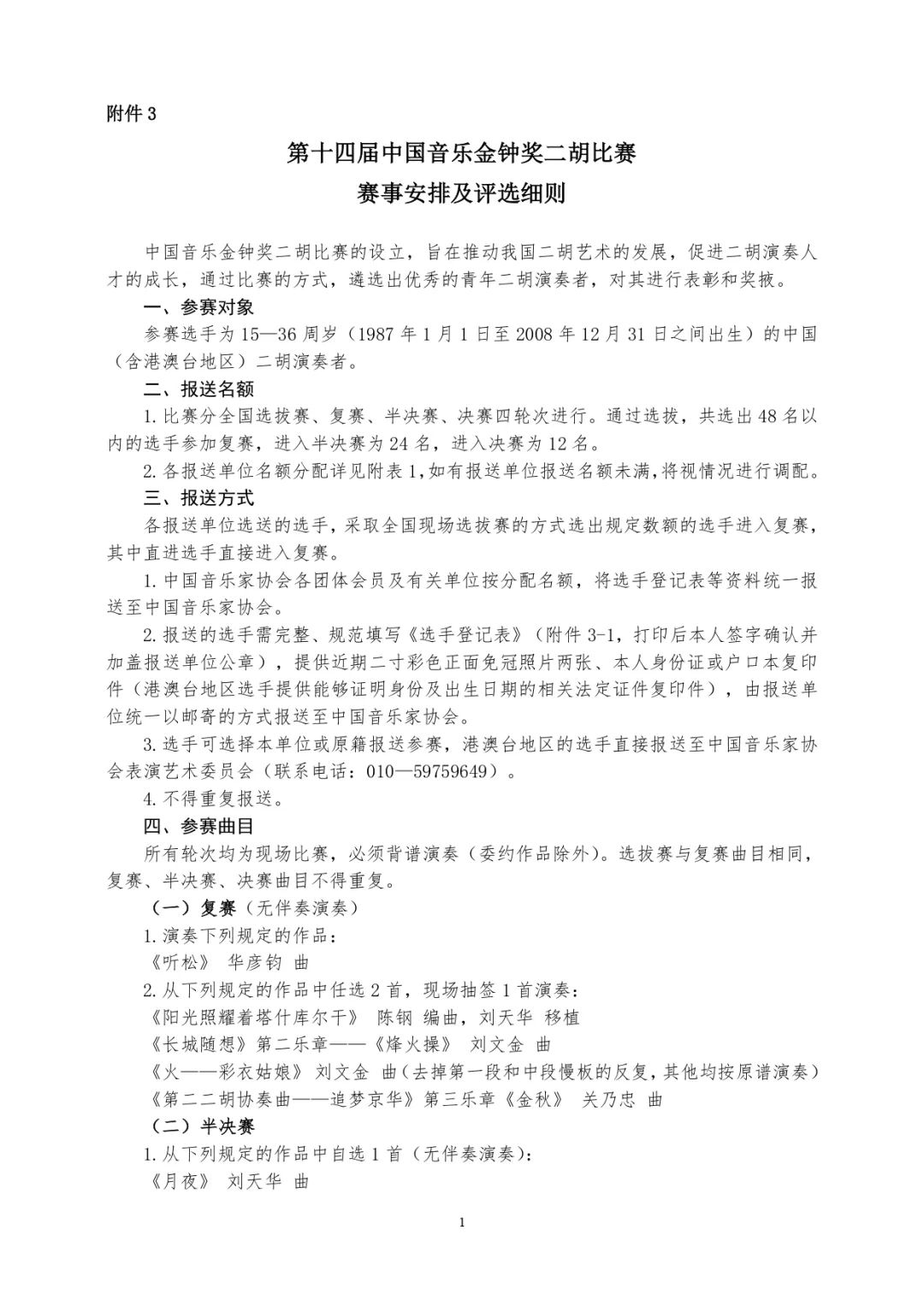 第十四届中国音乐金钟奖二胡比赛赛事安排及评选细则