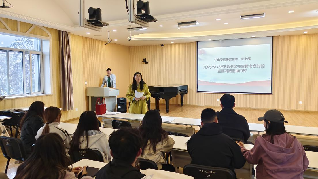 会议伊始,王哲煊老师结合当前国际国内形势,强调了深化改革对国家发展的战略意义。她指出,习近平总书记在吉林考察时提出的“以人民为中心的改革价值取向”和“敢于突破体制机制障碍”的重要论述,为新时代改革指明了方向。“我们作为基层党员,要深刻认识到改革不是抽象概念,而是与群众利益息息相关的具体实践。”王哲煊老师结合艺术学科特点,号召党员们在专业学习中践行改革精神,以创新思维服务社会需求。