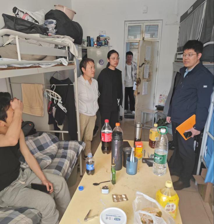 检查过程中,学院领导和老师们与同学们亲切交流,叮嘱大家在假期要提高安全防范意识,注意个人财产和人身安全,合理安排假期生活。同时,提醒同学们离校前要关好门窗、切断电源,做好宿舍安全防护工作。