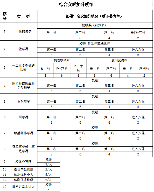 4、所有学生干部任职只可加一项,职务加分不可重复累计。 |
