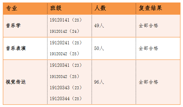 3)我院组织专家组对2019级报到的音乐学专业49名新生、音乐表演专业50名新生、视觉传达专业96名新生,共计195人分组进行了专业复查工作。