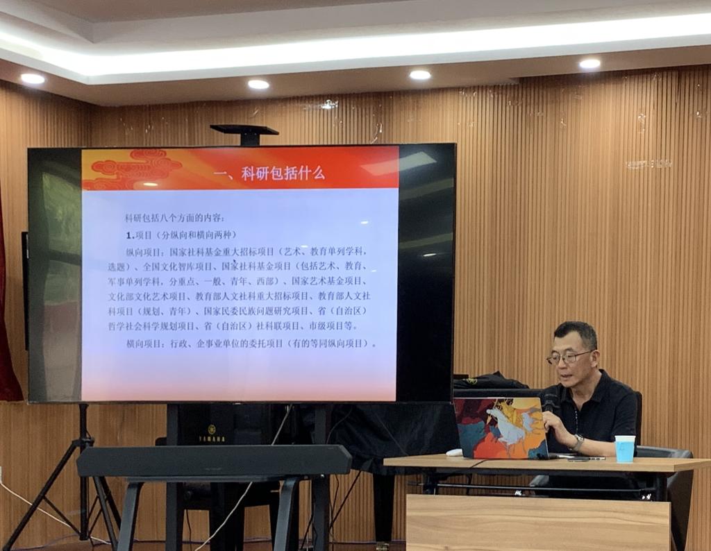 2024年6月19日下午16:00,北方民族大学中华民族共同体学院、中华民族共同体研究院的张景明教授在英国正版365鸿学楼2层东为广大师生带来了一场题为《艺术类专业科学研究之路径探索》的365(vip)英国上市官网。本次讲座旨在深入探讨艺术类专业科学研究的路径与方法,同时融入美育理念,为学院的艺术教育与科研注入新的活力。