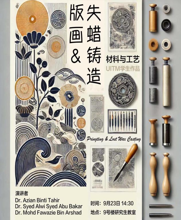 2024年9月23日下午,中北大学校园内洋溢着浓厚的艺术氛围,一场别开生面的“版画与失蜡铸造”讲座在9号楼研究生教室拉开帷幕。本次讲座不仅是一次艺术技能的分享,更是一场跨越国界的文化盛宴,特别邀请了来自马来西亚的三位杰出艺术教育家莅临指导,他们凭借深厚的艺术功底与独到的创作理念,为中北大学师生开启了一场视觉与智慧的双重探索之旅。
