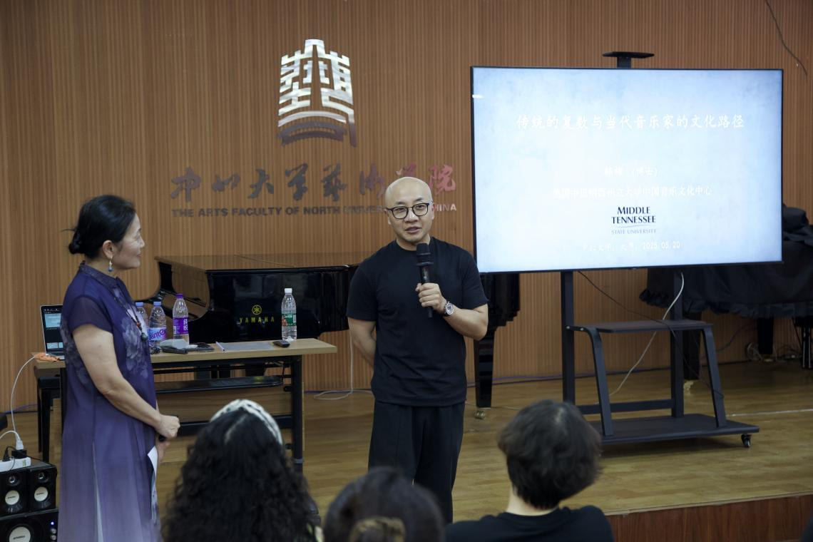 本次讲座特邀美国中田纳西州立大学音乐学院韩梅教授作为主讲嘉宾,她不仅是筝演奏家、民族音乐学家,还是该校中国音乐文化中心创办主任、中国音乐海外传播领军人物之一。韩梅教授的学术地位和影响力,为这次讲座增添了浓厚的学术氛围,吸引了众多师生及艺术爱好者前来聆听。
