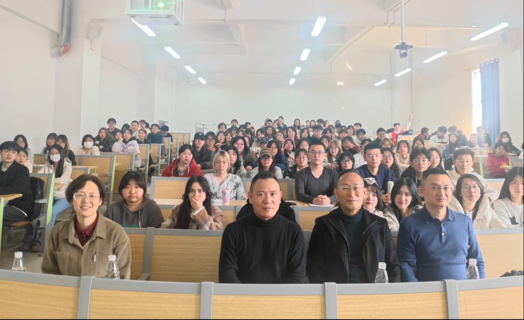 最后校友刘秋明、徐树升与同学们进行了互动,针对同学们提出的问题答疑解惑。在交流过程中刘董提出艺术专业要对AI创造多了解多学习。徐董在解答过程中提到“艺术就是价值”,作为学生在大学阶段要将专业学好,让艺术绽放光芒、创造最高价值,只有自己有价值、更好地为公司创造价值就是在提高自身的竞争力。