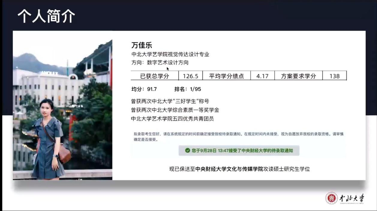 禹艳妮同学根据自己实践经验,提出多参加活动能够不断提高自己的业务能力和社会交流经验。